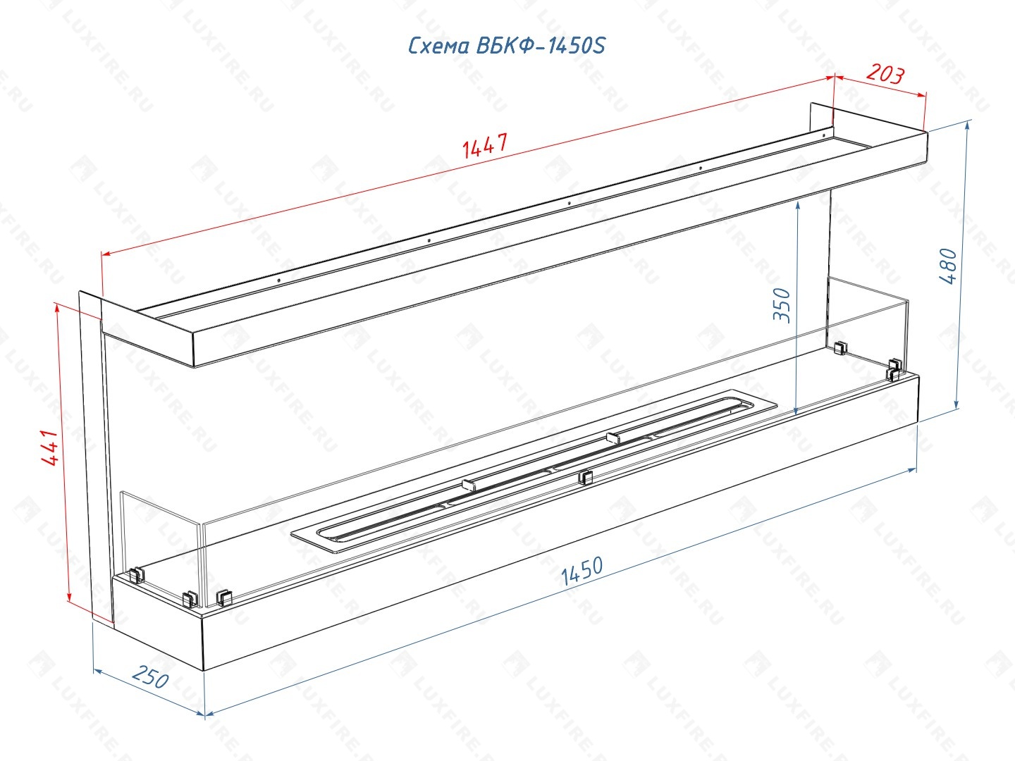 Встроенный биокамин Lux Fire Фронтальный 1450 S